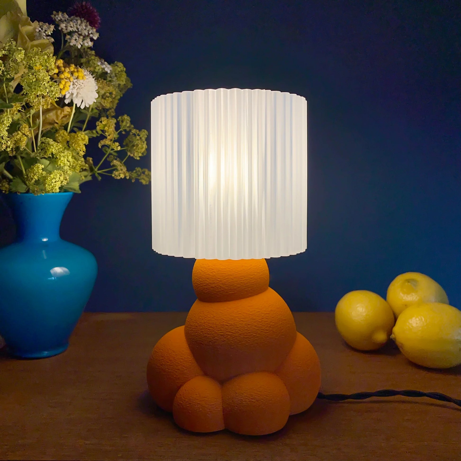 Bubble lamp, 3D printed in plant-based PLA.