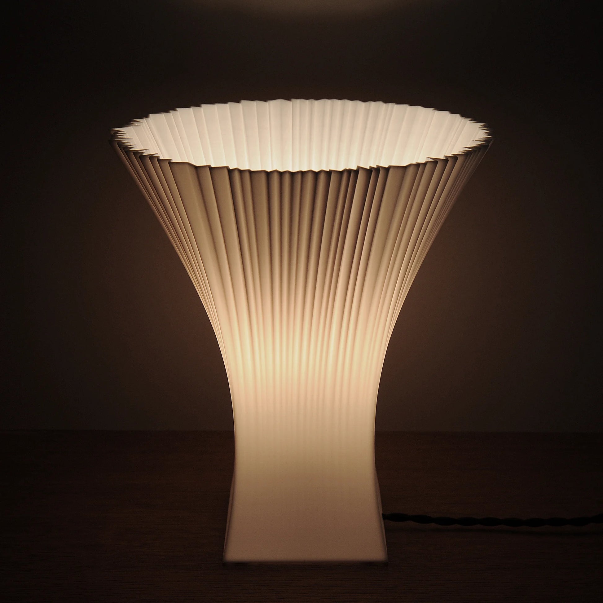 Pleated lamp, inspired by folded paper and fabric. 3D printed in plant-based PLA.