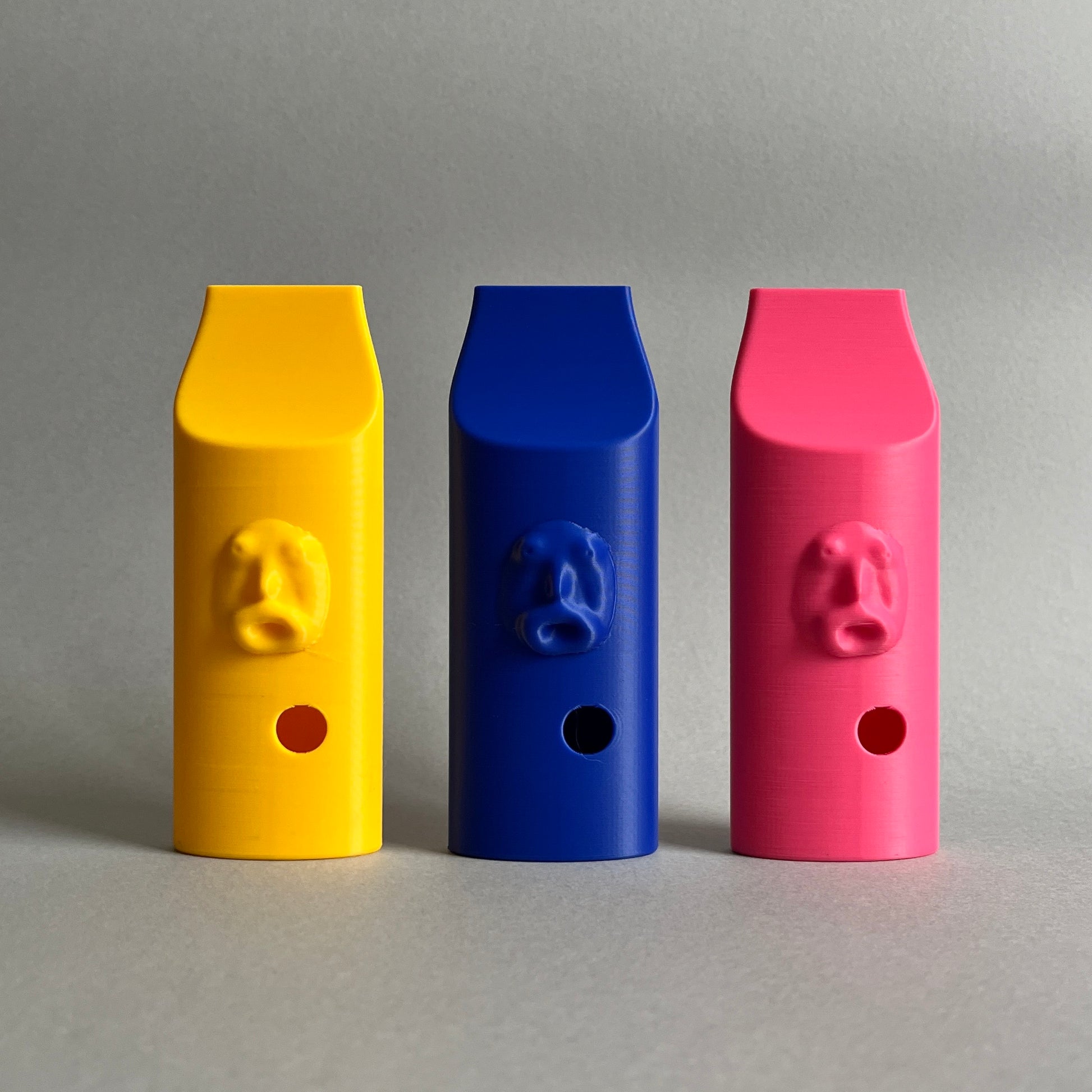 These non-traditional ocarinas are strange microtonal beauties. Two headed beasts. Also playable by small hands of little people. Height of the instrument is 12cm. 3D printed in biodegradable PLA in our London studio.