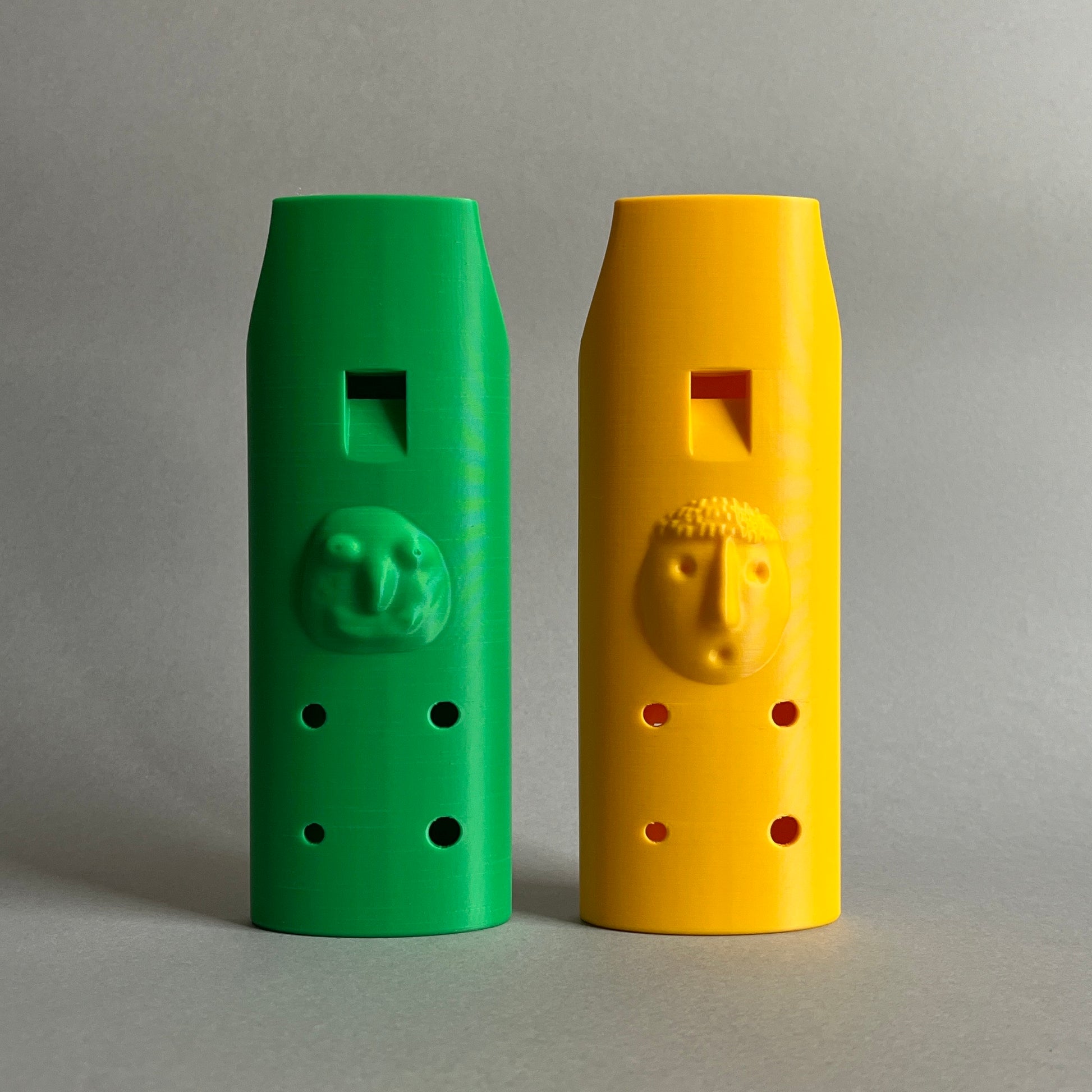 These non-traditional ocarinas are strange microtonal beauties. Two headed beasts. Also playable by small hands of little people.